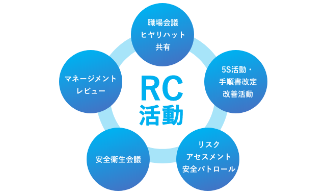三ツ子島埠頭は、安全と健康確保が企業活動の基盤であるとの認識から、安全衛生基本方針を制定し、RC(レスポンシブル・ケア)活動に取り組んでいます。