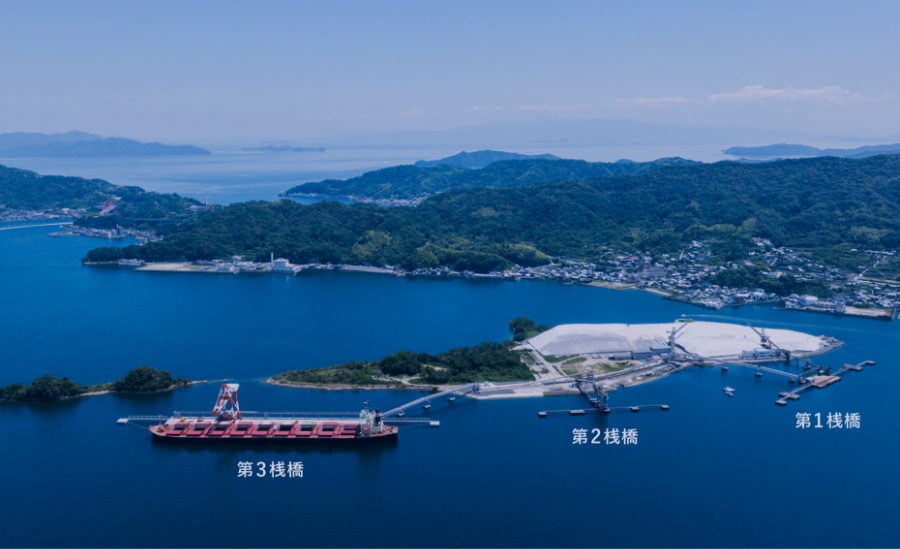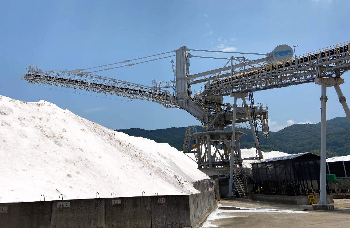 三ツ子島埠頭は、塩の中継基地として、生産地から輸送される塩の保管と需要家様に配送する積替え荷役を担っています。